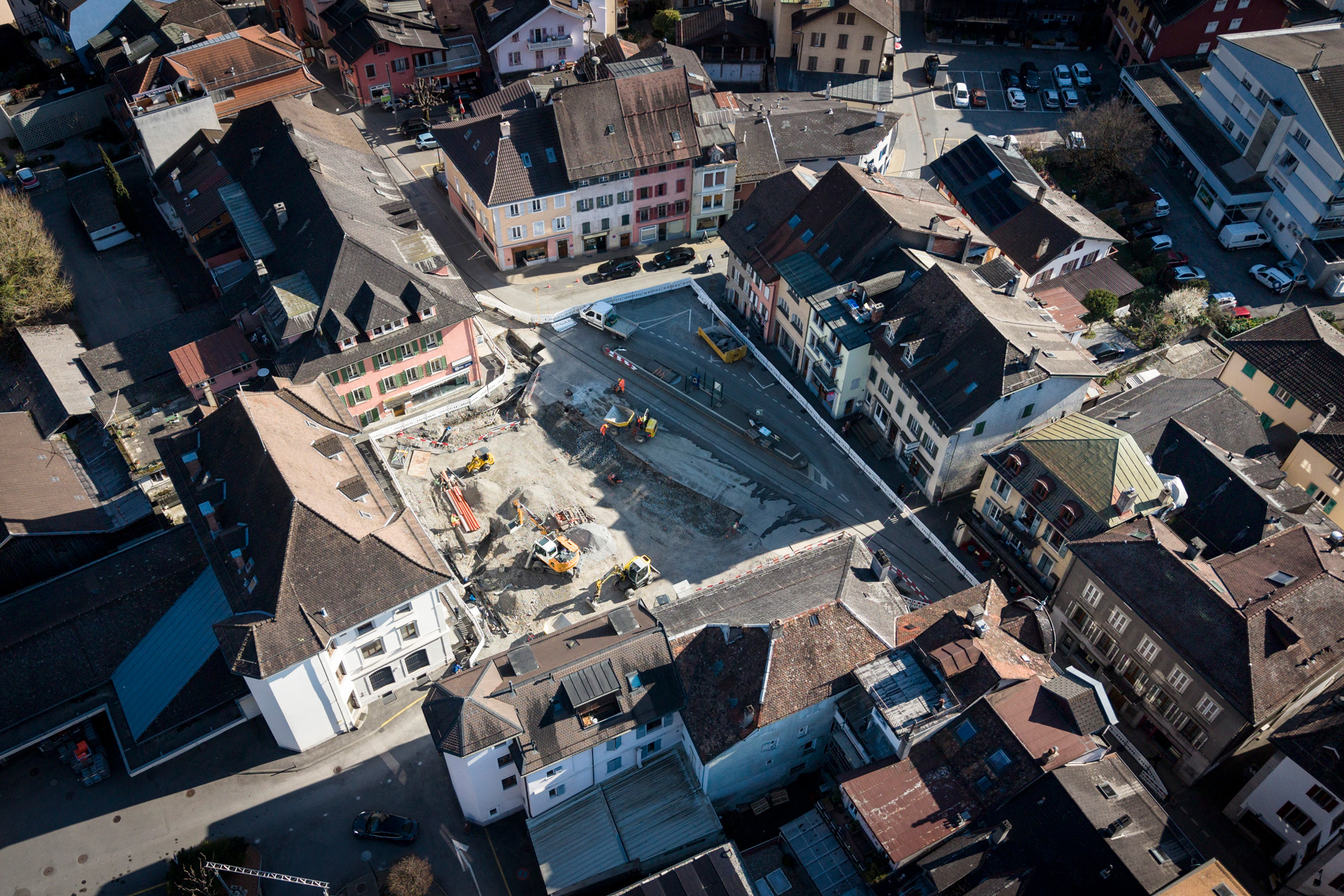 La Commune de Bex engage les premiers travaux, notamment la modification des réseaux souterrains (eau, électricité, autres infrastructures techniques).
