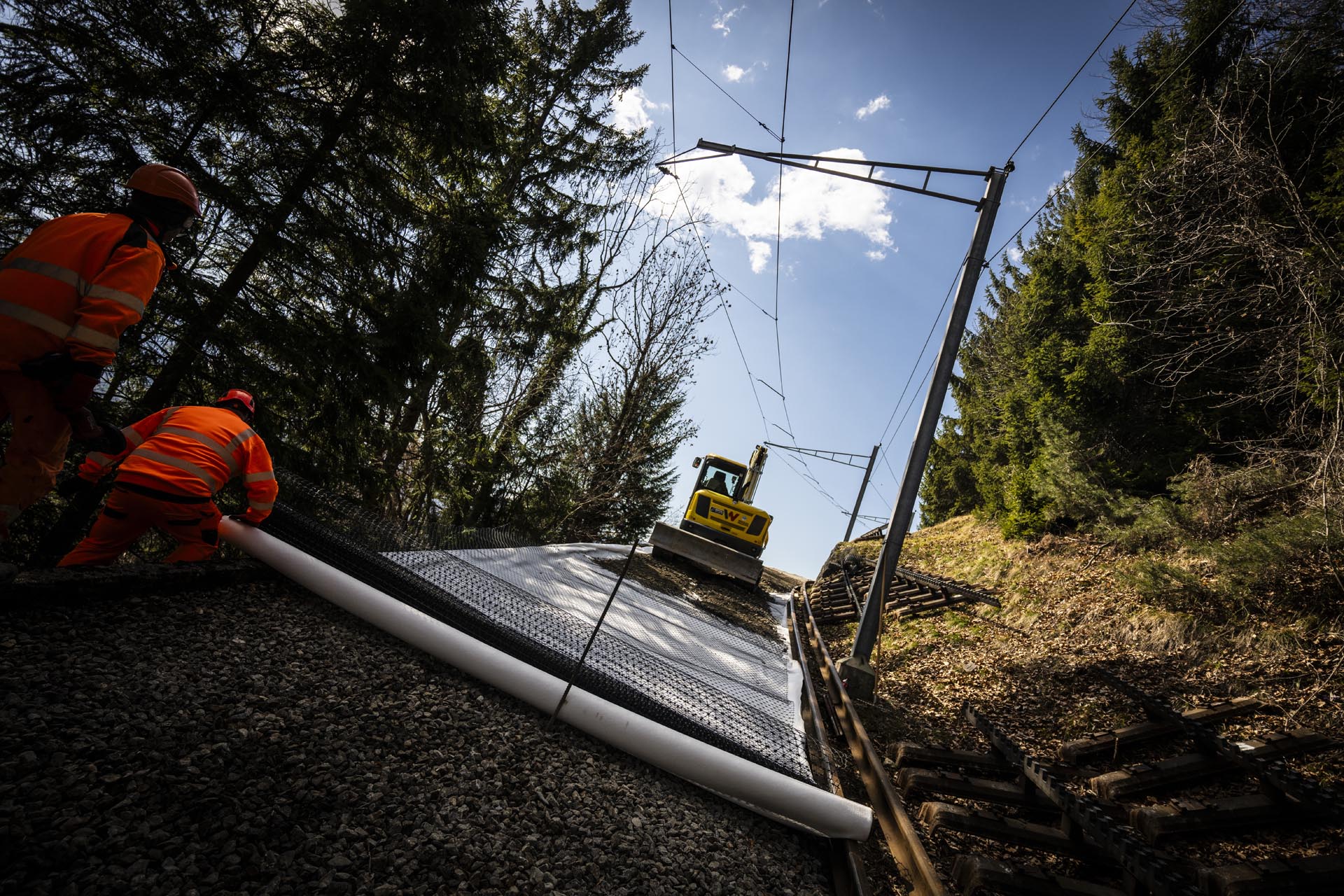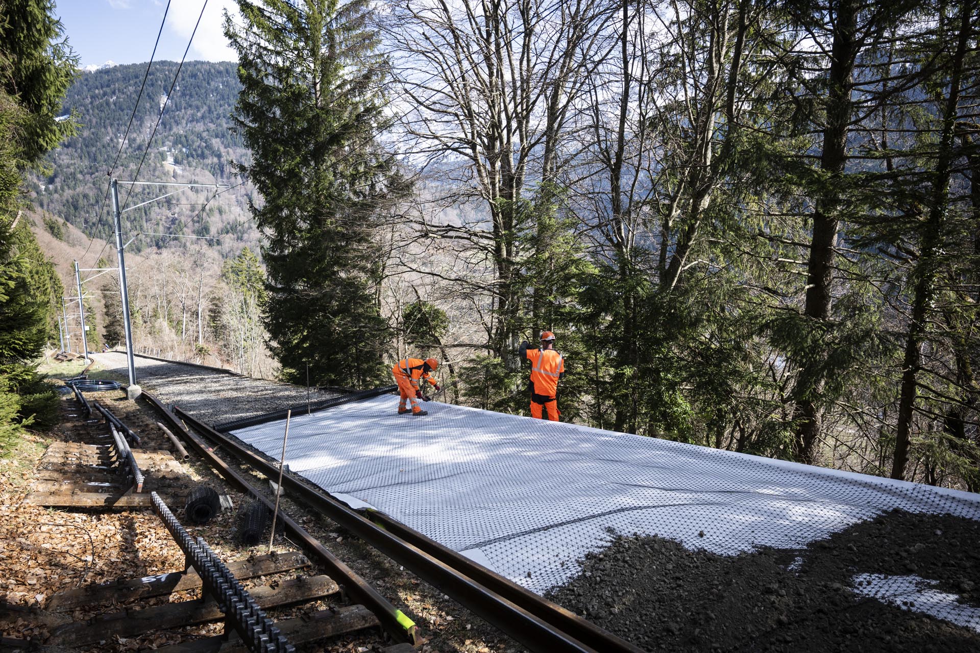Les équipes sur place démontent la voie, puis le ballast est recouvert d’un géotextile et de tout-venant afin de créer une route provisoire. Celle-ci facilitera l’arrivée des camions et des engins nécessaires aux travaux. Un accès similaire sera créé depuis Fontannaz-Seulaz afin de pouvoir travailler des deux côtés du tunnel et limiter ainsi la durée des travaux.