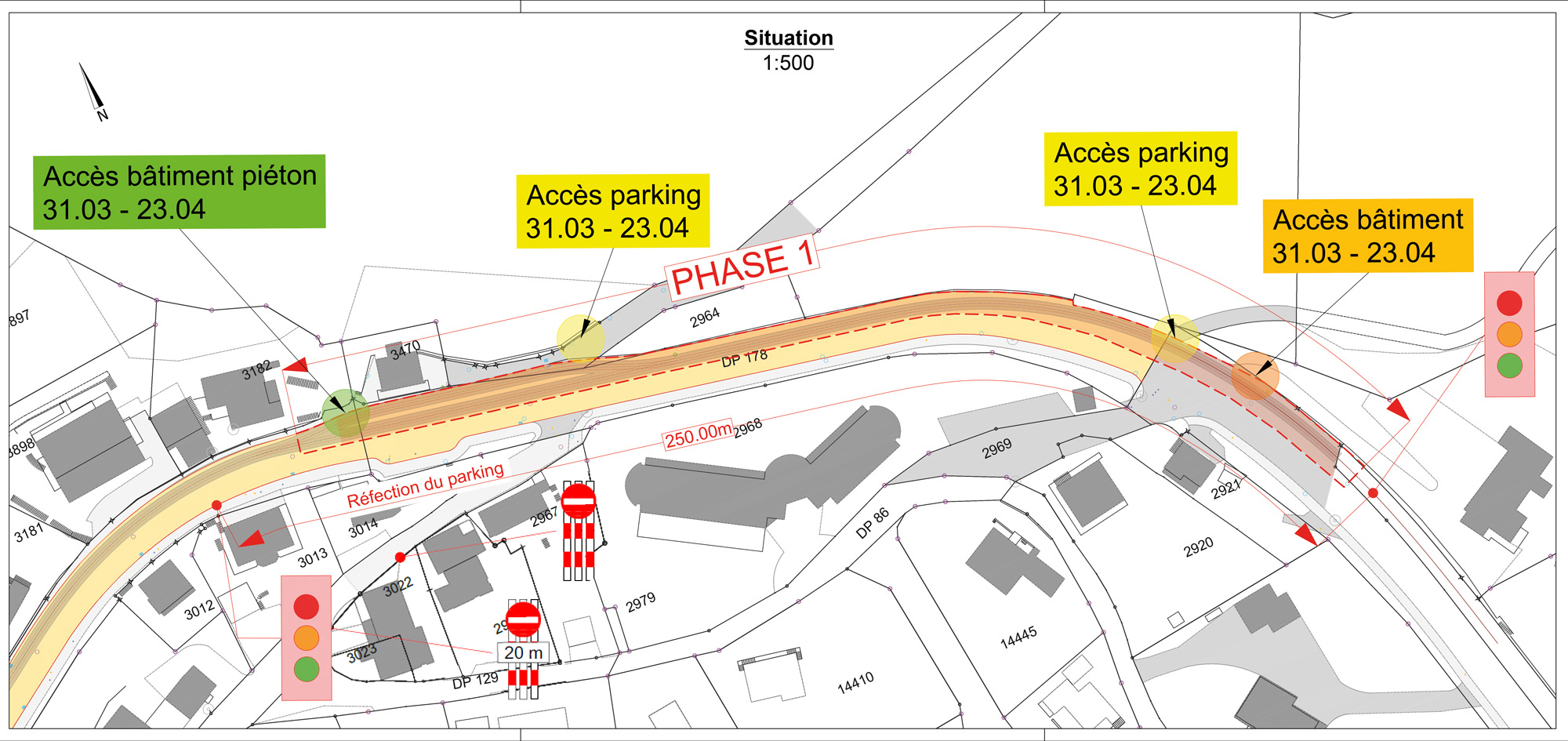 Pendant cette première phase, la circulation sera alternée par des feux.